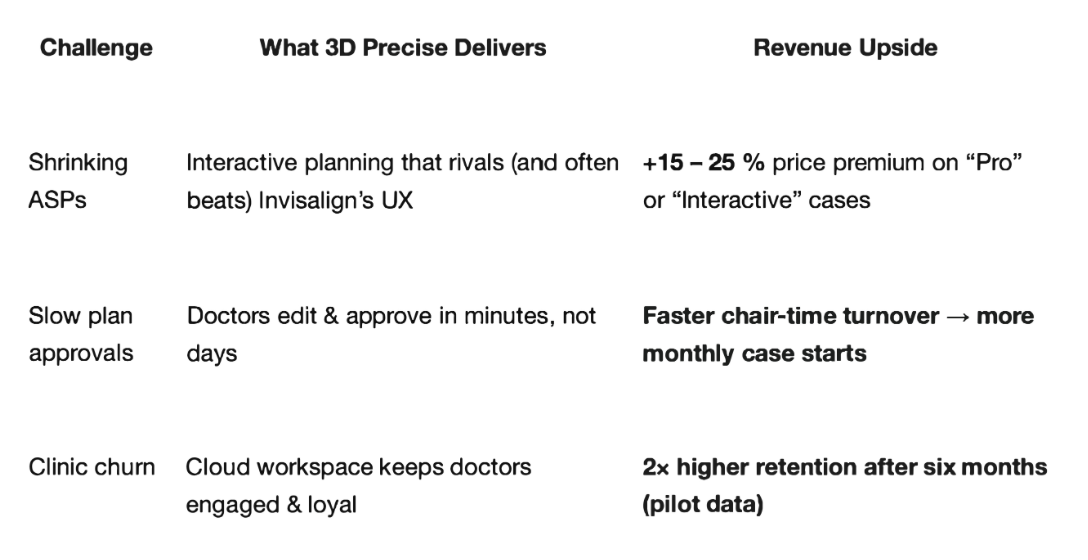 Physical aligners may look the same, but Your aligner product doesn’t have to. Use 3D Precise to turn a commodity product into a premium service—and watch revenue follow.